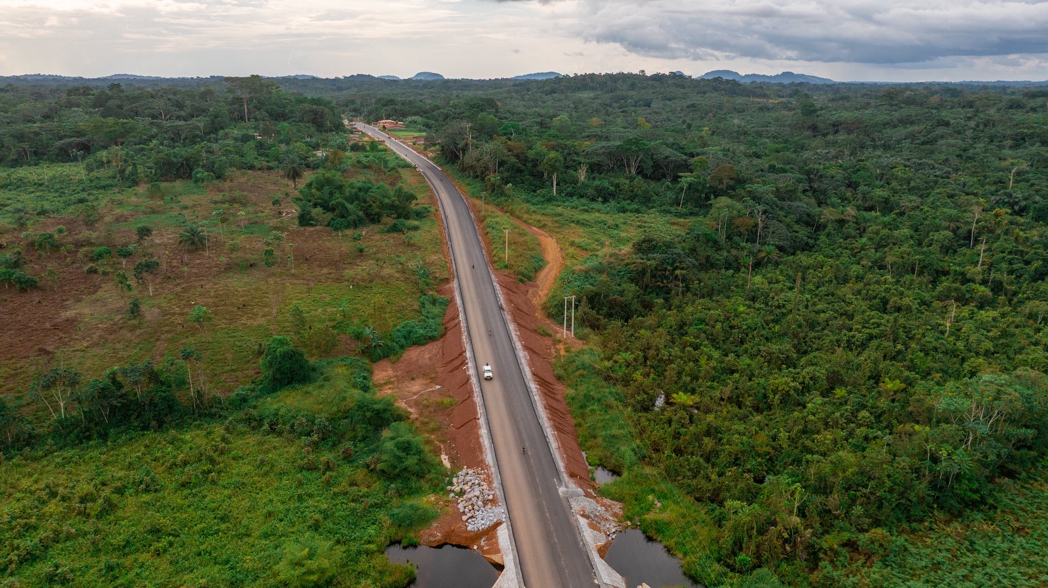 Point de démarrage des travaux, Cité économique d’Oyem jusqu’au au village frontalier d’Assock-Medzeng. Des travaux pour renforcer la libre échange et circulation entre les deux pays.